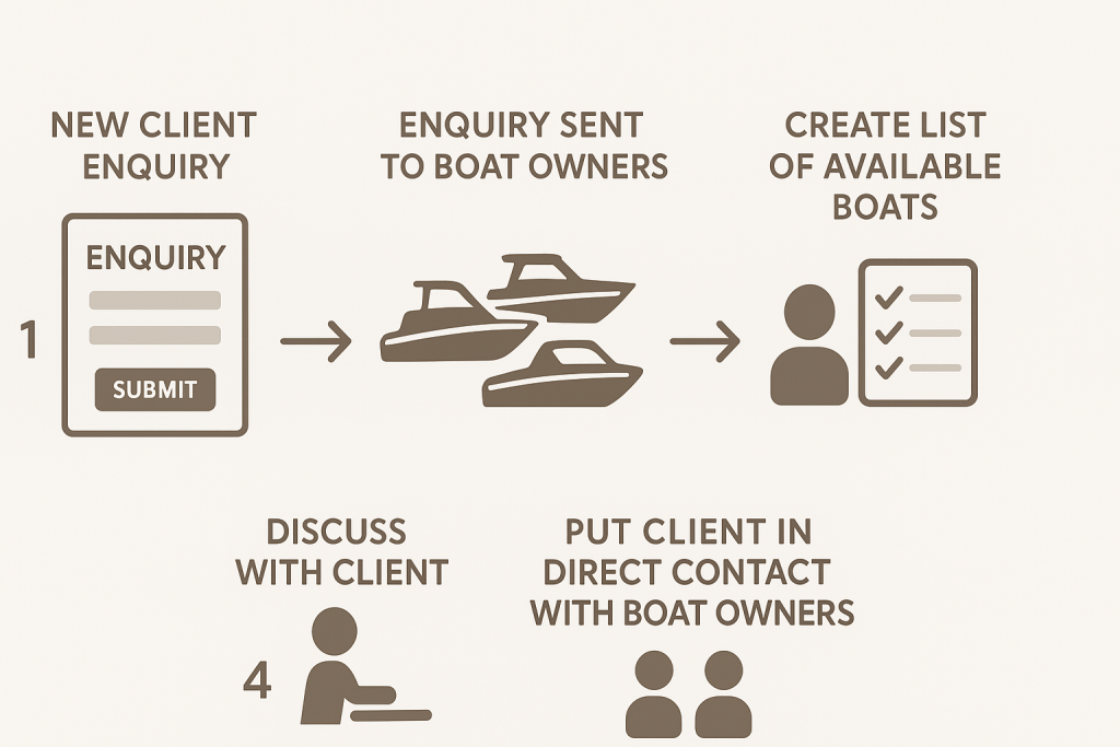 I’ve got some basic automation set up. This sends a summary of the client’s requirements to all suitable boat operators.